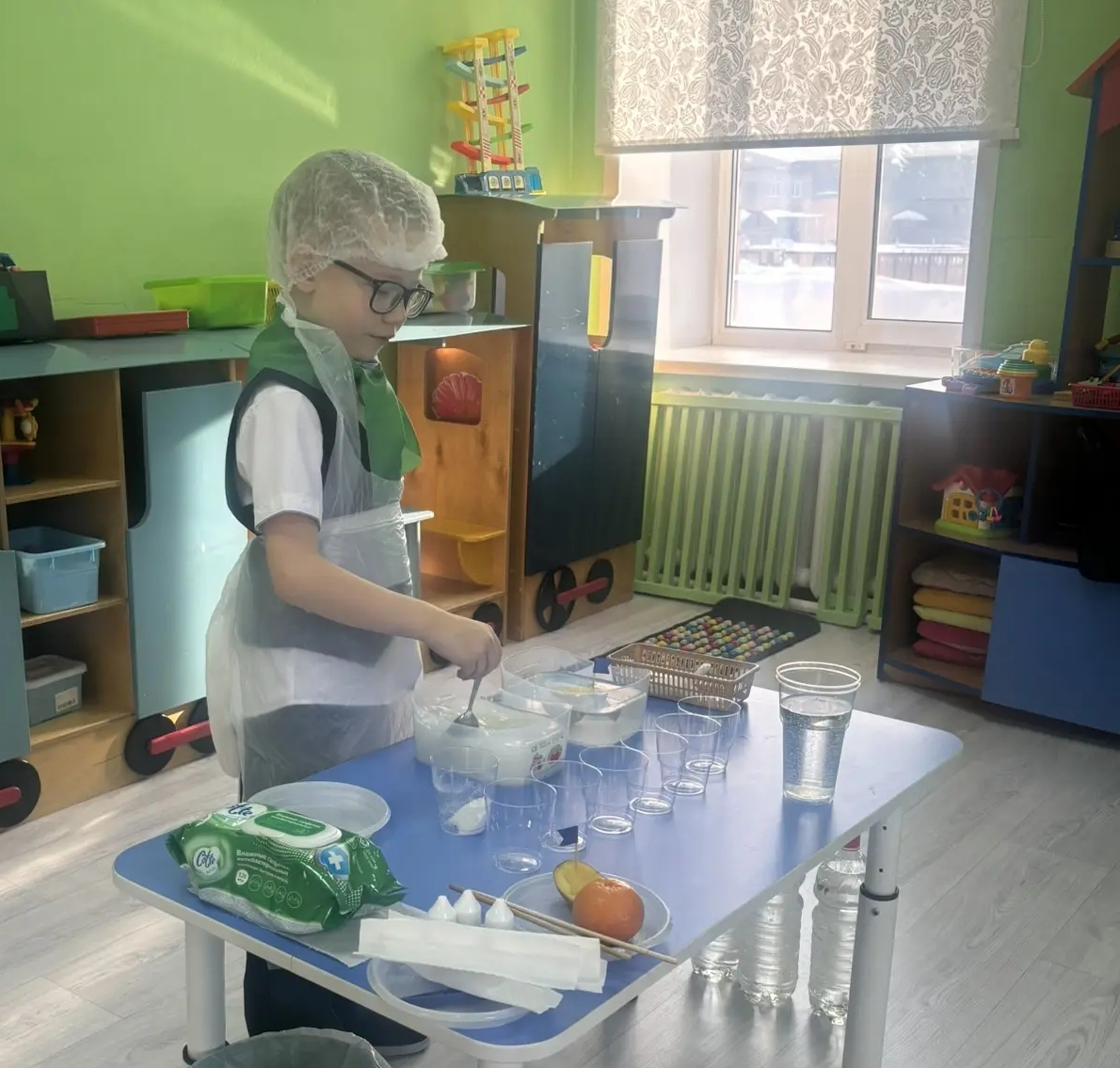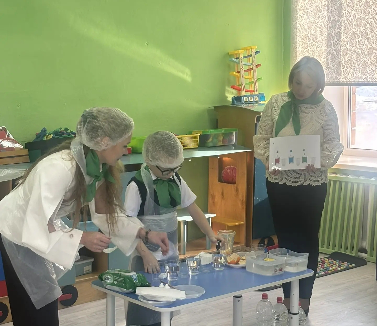 В экологической лаборатории «Мы исследователи воды» участников районного методического объединения встречал воспитанник подготовительной к школе группы Богданов Семен и его наставник Стринадкина Дарья Николаевна. Через несложные опыты Семен продемонстрировал гостям некоторые свойства воды и ее взаимодействие с предметами.